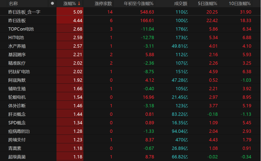TOPCon电池、HIT电池、钙钛矿电池概念板块涨幅均超过2%,阿兹海默、体外诊断、肝炎概念等医药相关股表现不错,昨日下跌的创新药板块今日回升皇冠信用網怎么弄 。